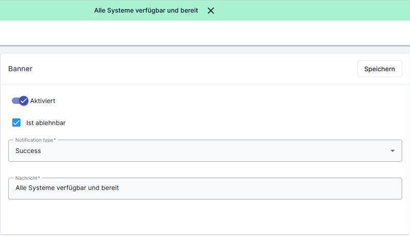 Im Ankündigungsbanner steht nun ein weiterer Typ für "Erfolg" zur Verfügung. Dieser stellt den Banner in grüner Farbe dar und kann verwendet werden, wenn eine Fehlersituation gelöst wurde.